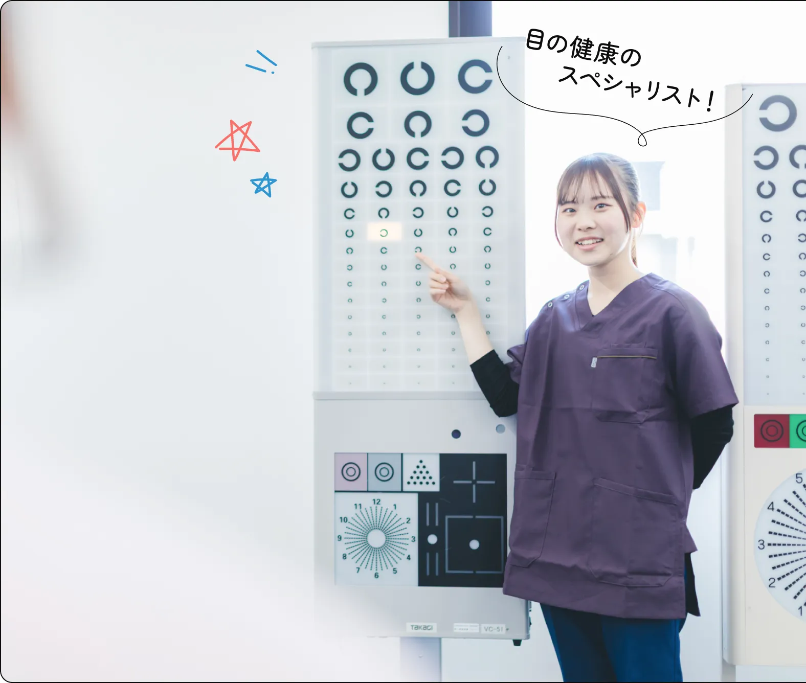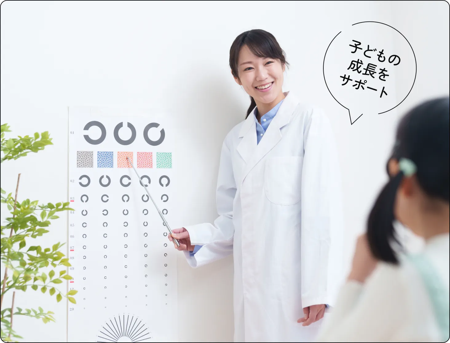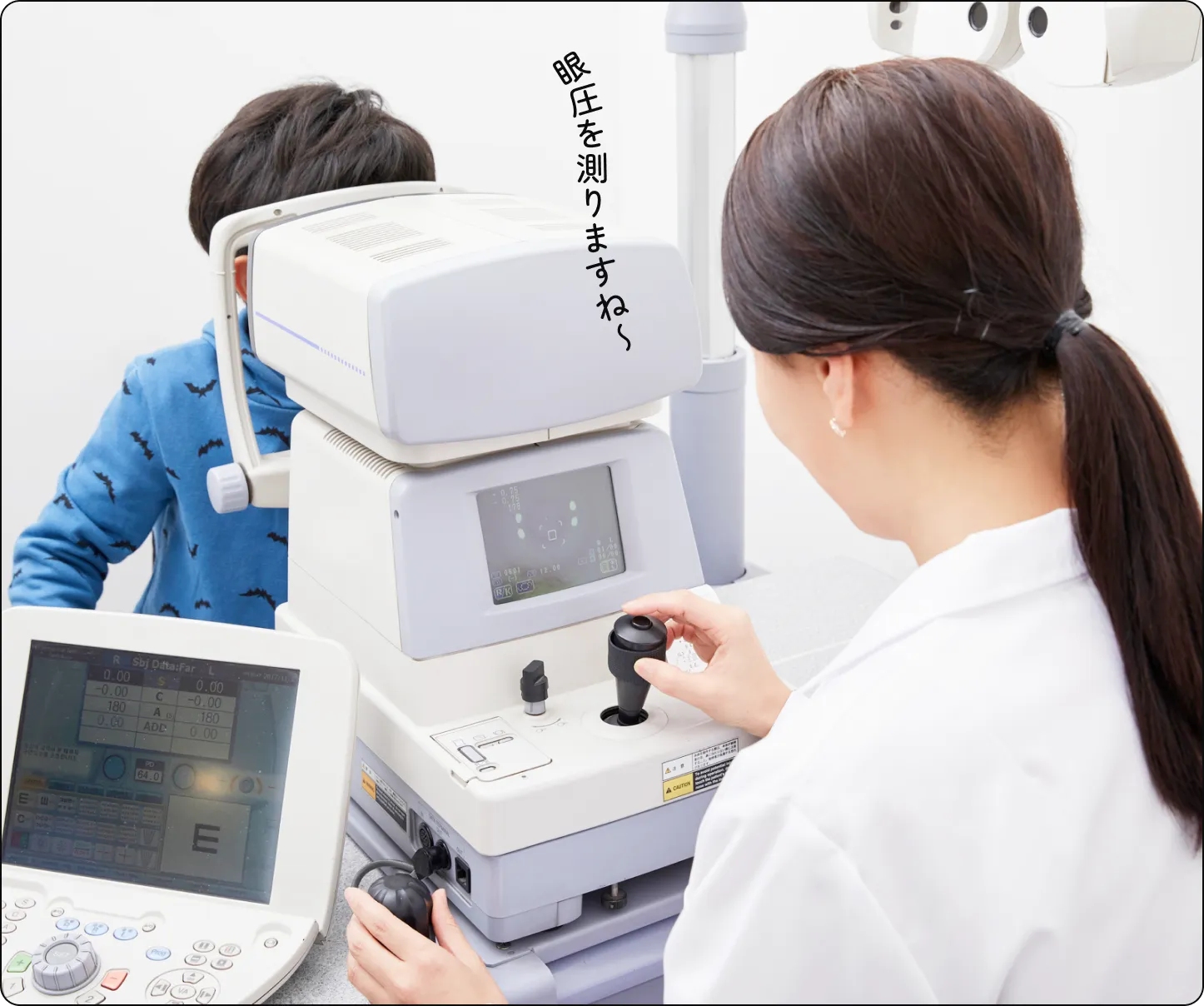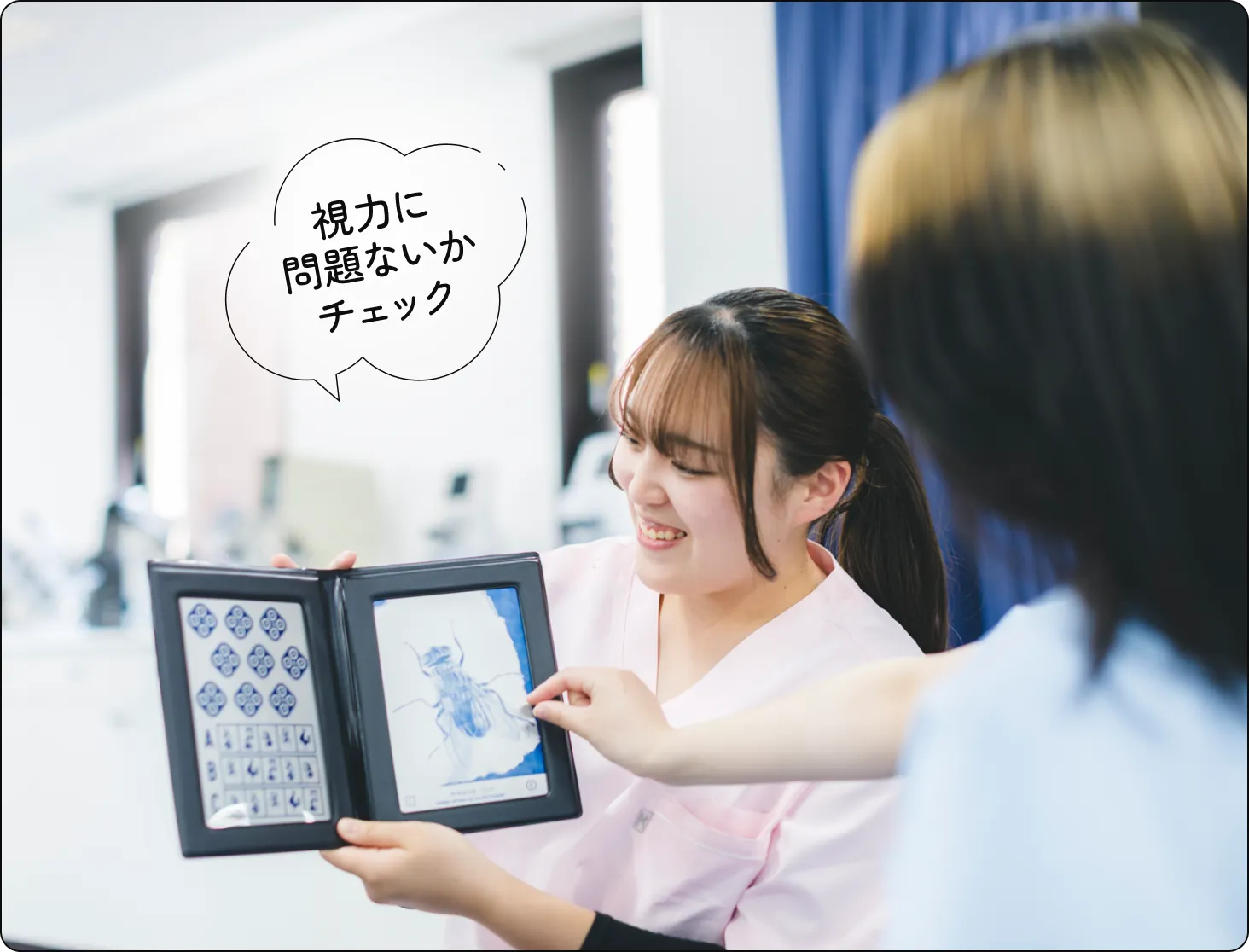 目の検査をしてくれる! 視力や目の状態を検査して、見え方に問題がないかを専門的にチェックします。