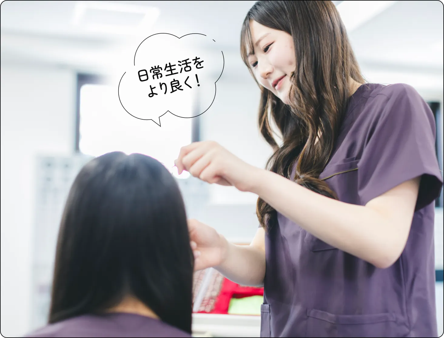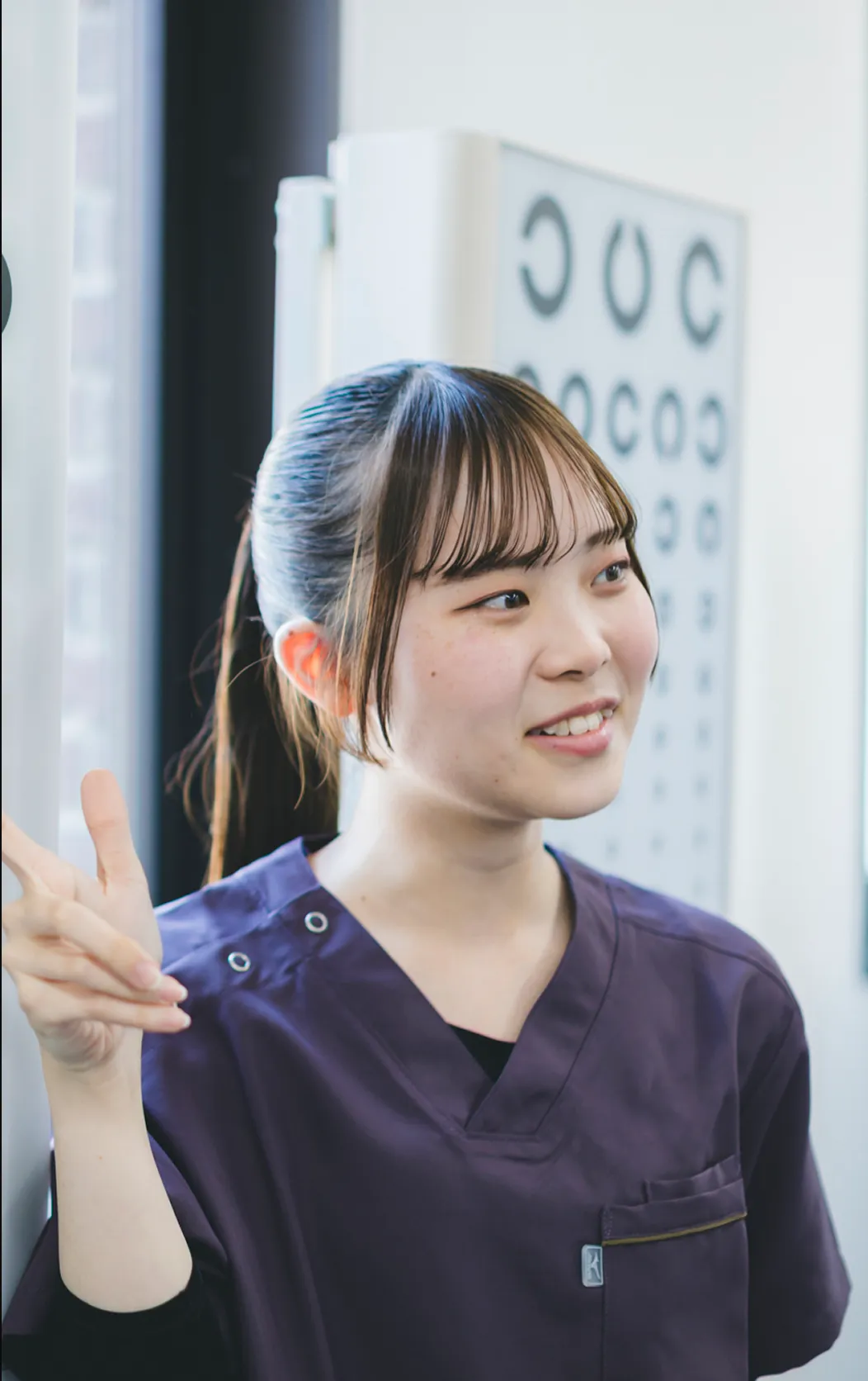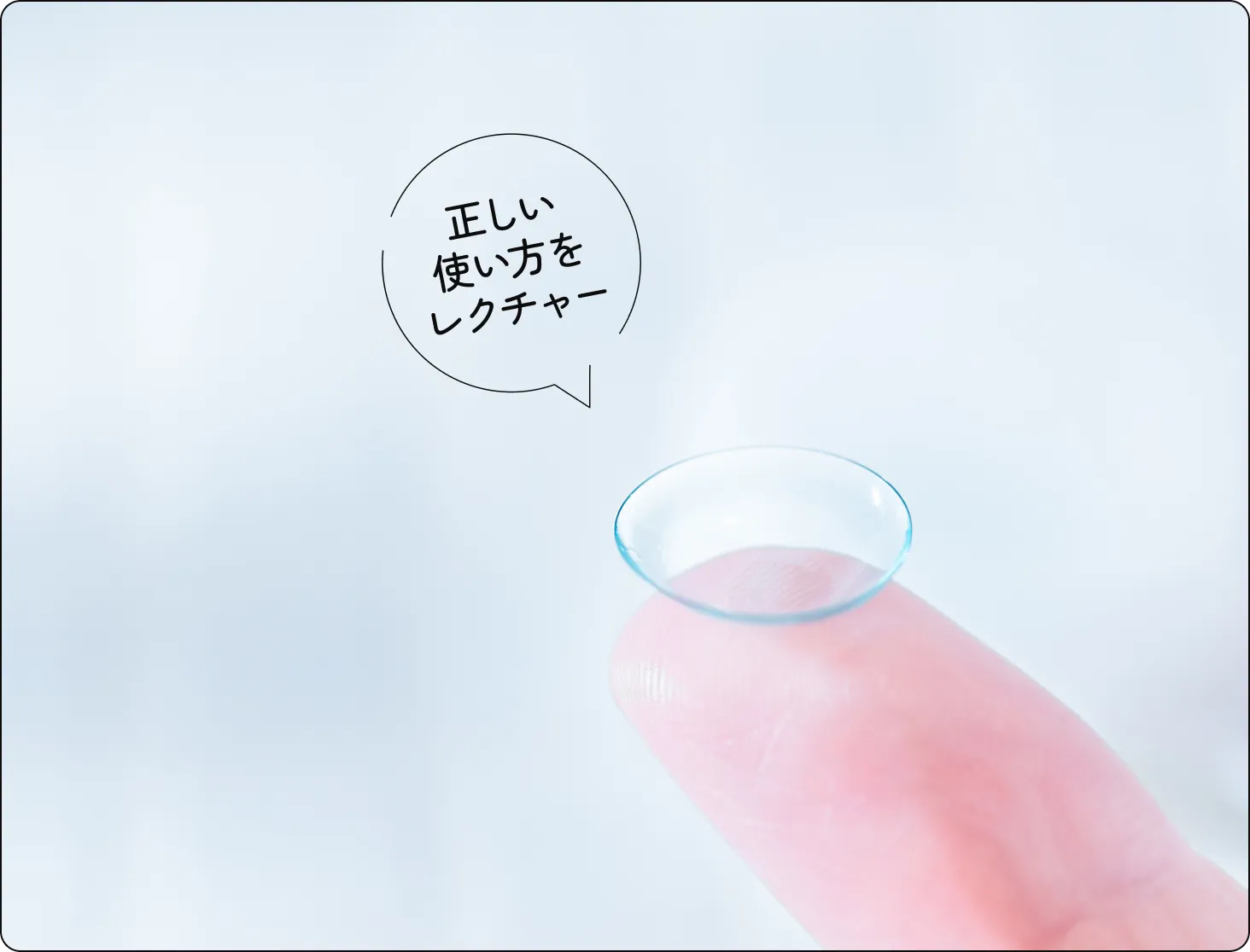 コンタクトの装着指導も! コンタクトを安全に使えるよう、つけ方や外し方、正しい使い方を丁寧に教えます。