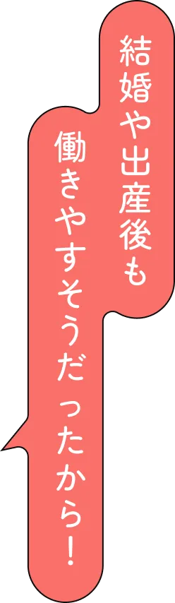 結婚や出産など、将来を考えて働きやすい職業を選びました!
